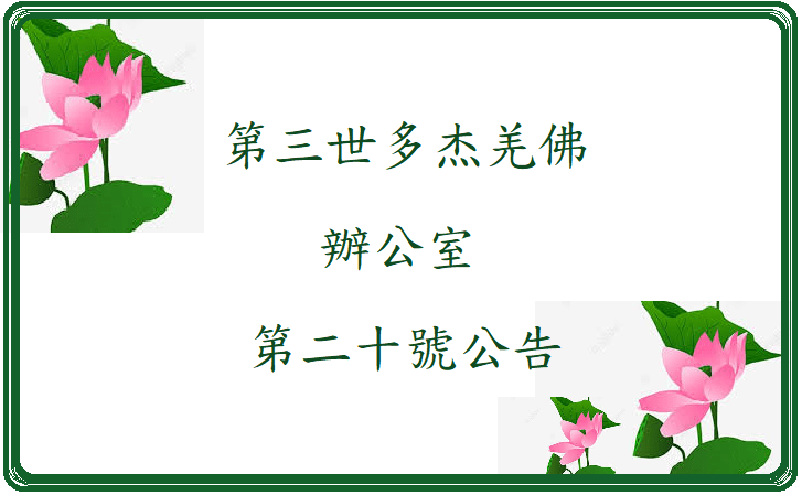 在此我們再強調一遍,第三世多杰羌佛辦公室從來沒有請過任何法音給任何一個人,因為第三世多杰羌佛辦公室沒有製作法音,連辦公室聽聞的法音,都是從國際佛教僧尼總會請的。