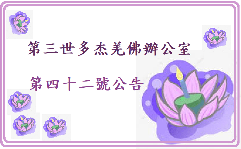 第三世多杰羌佛辦公室第四十二號公告 (06/03/2014)