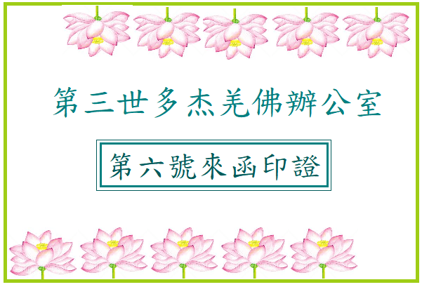 第三世多杰羌佛辦公室第六號來函印證 (12/26/2013)