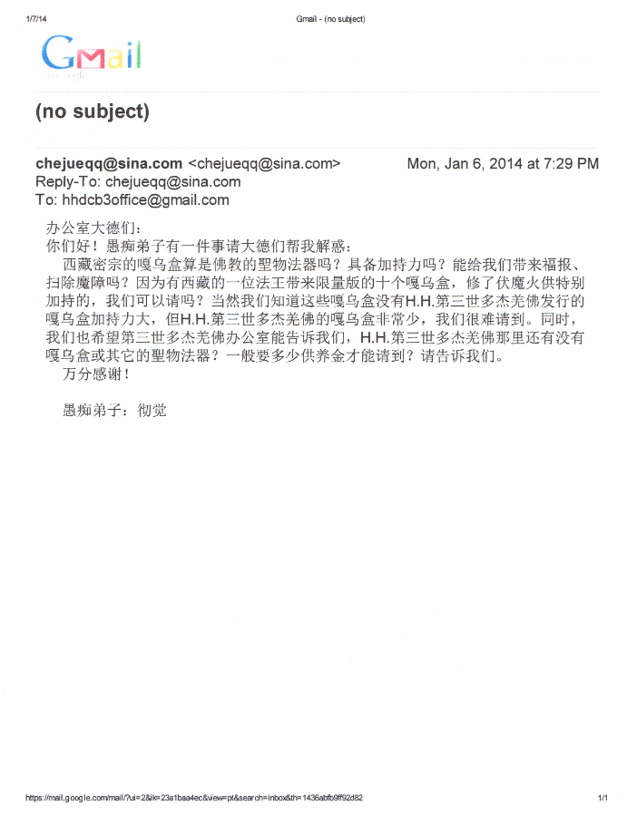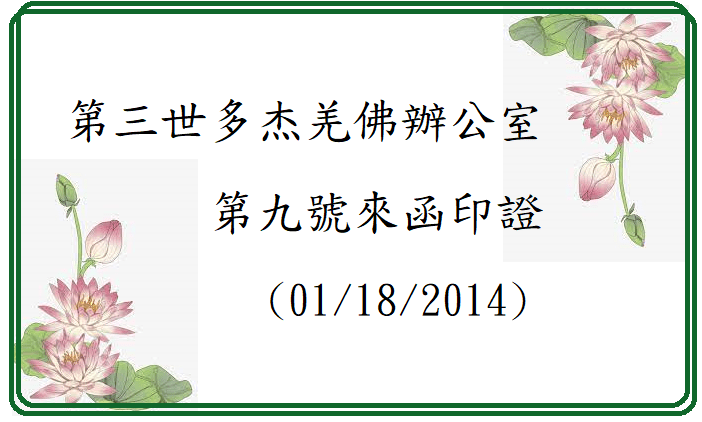 第三世多杰羌佛辦公室第九號來函印證 (01/18/2014)