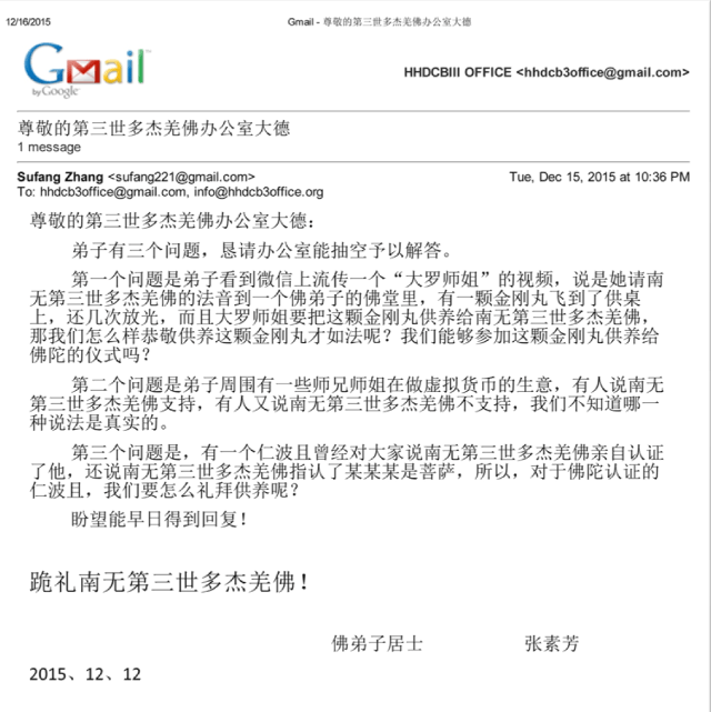 第三世多杰羌佛辦公室第十三號來函印證 (12/16/2015)