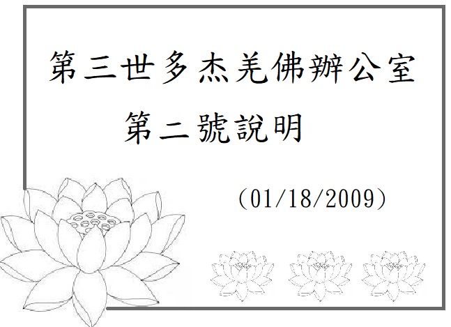 第三世多杰羌佛辦公室第二號說明 (01/18/2009)