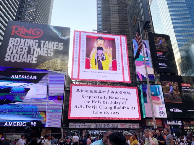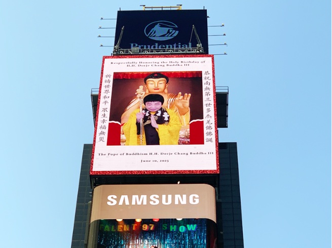 第三世多杰羌佛佛相登上時代廣場大螢幕